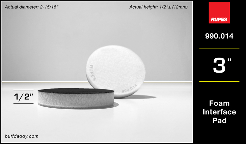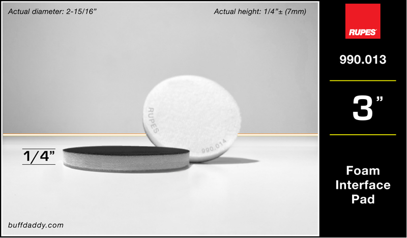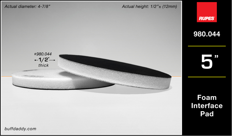 Rupes Foam Interface Pads are available in two heights (1/4" and 1/2"), and three diameters (3", 5", 6"). They feature an outstanding micro hook & loop attachment material, making them compatible with all Velcro-style sanding discs. This includes the latest generation of ultra-thin discs offered by just about every sanding disc manufacturer.