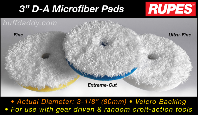 Rupes 3" D-A Microfiber Pads are specifically designed for use with random orbital and gear-driven machines. They are available in (3) versions.