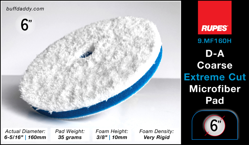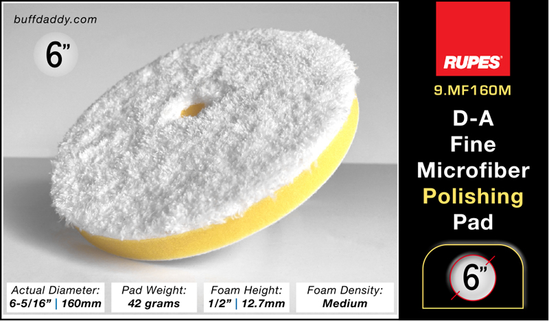go-to pad for everyday polishing tasks. Due to its versatility, this pad is by far the most popular pad in the line. It delivers very fast-cutting action, but can also achieve a tremendous finish. For ultimate gloss when working on finicky paint types, final polish using a yellow or white Rupes foam pad, and an appropriate buffing liquid.