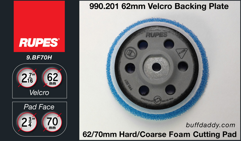 ![]() 990.201 | Rupes 62mm (2-7/16") Velcro Backing Plate. 01-04-2026 Note: This product has been discontinued. Its replacement is a trimmed down version of the 990.007, with performance on par with the 990.201. Therefore, should you choose to order this item, the trimmed 990.007 will be sent in its place.