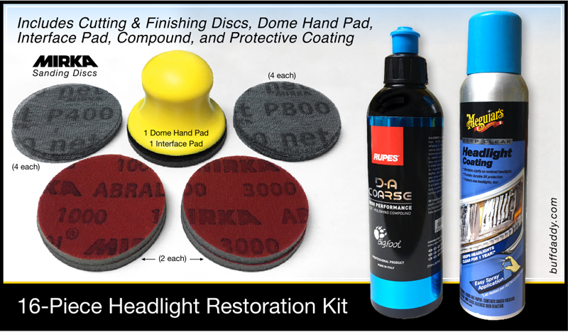 Piecing together the items needed to restore clarity to plastic headlight lenses can be confusing. To simplify things, we've gathered up the components needed to restore that like-new appearance, and listed them here.