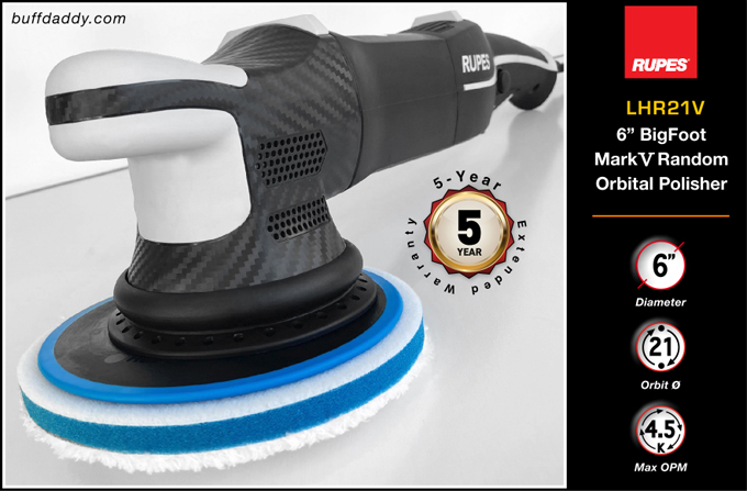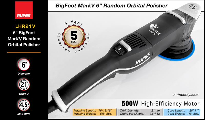 Looking for a 3" companion to this machine?Rupes LHR75E BigFoot 3" Random Orbital Polisher. This machine carries an extended warranty: Simply register your MarkV polisher within 30 days of purchase, and you’ll receive an extended warranty that ensures your investment is protected for 5 full years. Specifics listed here.![]() |