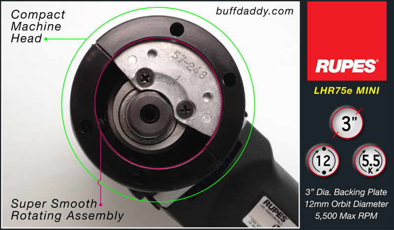 Add a variety of Rupes Buffing Pads. (save 30%) You'll be ready to tackle just about any polishing task if you've got a set of Rupes® Buffing Pads on hand. Rupes Foam Pads have been specifically designed for use with large stroke, random orbital polishers (4 versions are available). Rupes Wool Pads deliver for a smooth & controlled feel (2 versions are available). Add a spare Velcro Backing Plate. (save 30%) Having a spare backing plate on hand is smart. The Rupes 990.007 3" Backing Plate is a direct replacement for the original. Add Rupes Buffing Liquids. (save 30%) A trio of buffing liquids to choose from. All-new formulas. Add a Flamethrower LED Light Kit. (save 30%) This handy light mounts directly onto your polishing machine. Add a pair of Polished Stainless Steel Bolts. Replace the delicate factory supplied plastic bolts, with polished stainless steel bolts! Nicer looking, plus they allow for super-tightening of the head cap assembly. Add a Duflle Bag or Carrying Case. (save 30%) Never run out of room when transporting your polishing tools & accessories! Rupes Embroidered Duffle Bags & Carrying Cases are quality built. Two to choose from: Semi-Rigid Duffle Bag | BIG BAG Tool Case Looking for a 5" or 6" version of this machine?