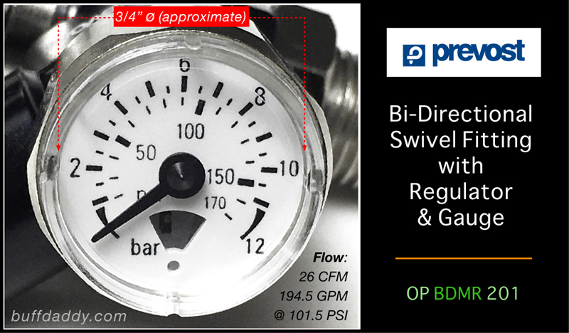 Prevost Bi-Directional Swivel Fittings minimize binding and twisting of connected components, making it much easier to manage hoses & tools. There are four versions available: OPBD201 / Swivel Only OPBDM201 / Swivel with Gauge OPBDR201 / Swivel with Regulator OPBDMR201 / Swivel with Gauge & Regulator Multi-use: • Install between a tool & hose • Use between connected hoses • Install onto an air compressor outlet Specifications: • Flows up to 26 CFM / 194.5 GPM @ 101.5 PSI (7 bar) • Features 1/4” NPT thread (1 male | 1 female) • Part number: OP BD201 | OPBD201 For optimum performance:Use only precision-matched Prevost Fittings/Plugs. Purchase them here. We carry a wide variety of Prevost products. View them here.